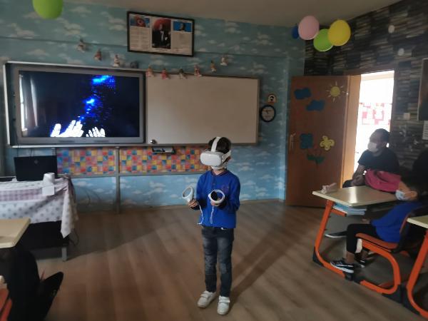 RİZE’de ilkokul öğrencileri ‘Sanal Gerçeklik’ oyunu ile astronot olup, uzayda gezintiye çıktı.