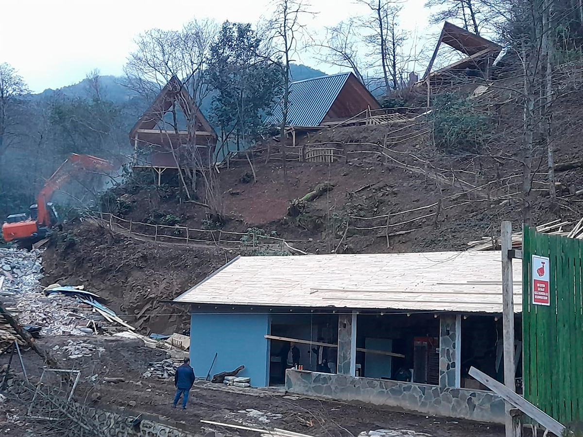 Rize’nin Fındıklı ilçesi Yeniköy köyünde kaçak olarak yapıldığı tespit edilen 1 adet restoran ve 11 adet bungalov hakkında yıkım kararı alındı. Gerekli hukuki ve idari süreçlerin tamamlanmasının ardından, yapıların olduğu yerde gerekli tedbirlerin alınmasının ardından Rize İl Özel İdaresi ekipleri tarafından yıkıldı.