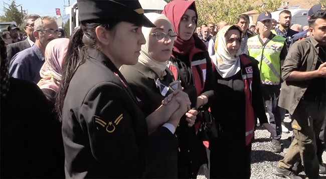 Asker üniforması giyen şehidin eşi Hatice Özsoy ile annesi Fatma Özsoy, burada gözyaşı döktü.