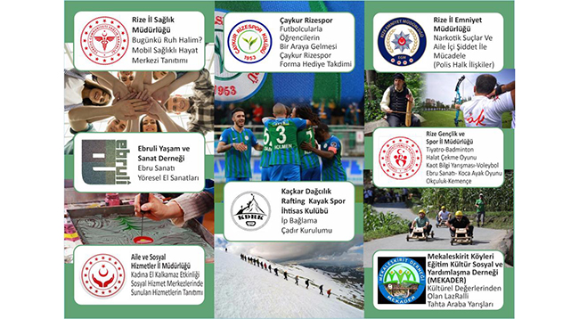 Açıklamada, Rize Sağlık Müdürlüğü tarafından yürütülecek çalışmalarda, yöresel yemekler, şehrin kültürel değerleri sepet örücülüğü, kaligrafi, fındıklı yöresel taş ev, pileki taşı, serender, Hemşin çorap örücülüğü, müze tanıtımı, turizm alanlarının tanıtımı, yöresel kıyafetler tanıtımı gerçekleştirileceği ifade edilerek, Çaykur Rizesporlu bazı futbolcuların söyleşiye katılacağı belirtildi.