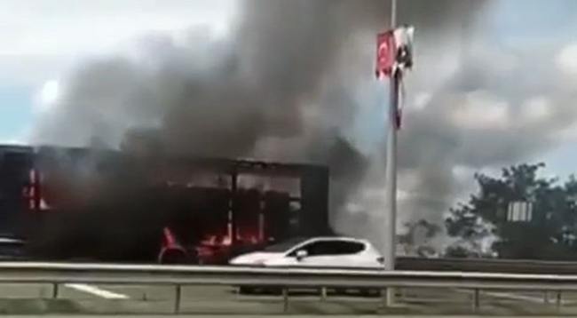 Olay, Karadeniz Sahil Yolu Rize Sanayi Kavşağı mevkiinde meydana geldi. Edinilen bilgiye göre, seyir halindeki Gürcistan plakalı tır aniden alev aldı. Tırdan alevlerin yükseldiğini gören vatandaşların ihbarı üzerine olay yerine itfaiye ekipleri sevk edildi. Olay yerine gelen itfaiye ekipleri yangını söndürürken, yanan tırın dorsesi kullanılamaz hale geldi.
