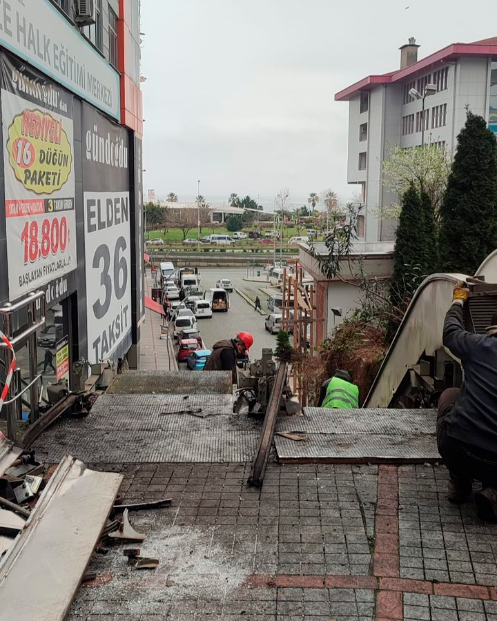 Tophane mahallesinde Atatürk ve Cumhuriyet caddelerini birbirine bağlaması için inşa edilen, uzun süredir çalışmayan yürüyen merdivenin sökümüne başlandı.