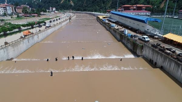 Dalgıçların dere yatağında yaptığı aramaya askeri helikopterlerle de havadan destek veriliyor. Rize’de çarşamba günü meydana gelen, 6 kişinin hayatını kaybettiği sel ve heyelan felaketinde Muradiye beldesinde çöken evin enkazı altında kalan Batuhan Delihasan ile Güneysu ilçesinde sele kapılarak kaybolan Hasan Arıcı’yı arama çalışmaları sürüyor.
