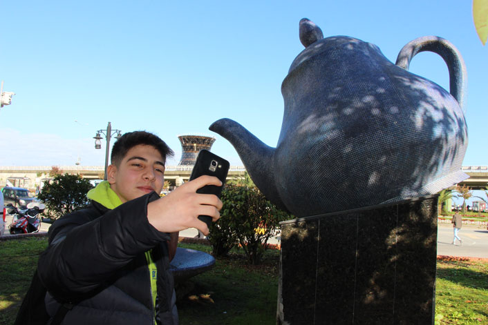 Rize’de inşaatı devam eden Çay Çarşısı’nın içerisinde bulunan devasa çay bardağı şeklindeki bina, daha şimdiden sosyal medyada büyük ilgi görmeye başladı. Sosyal medyada fotoğraf paylaşmak için yarışanlar, 29 metrelik çay bardağını farklı farklı açılardan çekerek ilginç fotoğraflar ortaya koymaya çalışıyor. Öyle ki Rize Belediyesi’nin hemen ön kısmında bulunan çaydanlık ile birlikte çekilen fotoğraflar, açısı ayarlandığında demliğin bardağı dolduruyormuş gibi görsel ortaya koyuyor.