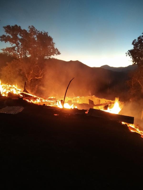 ARTVİN'in Şavşat ilçesinde çıkan yangında 3 ev, 3 ahır ve 4 samanlık yandı. İtfaiye ekiplerince söndürülen yangında, 12 büyükbaş da öldü.