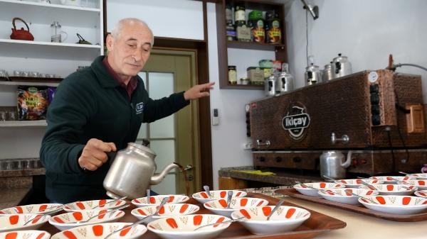 Sürmene ilçesinde özel bir firmaya ait çay fabrikasında çalışan Coşkun Çınar, sıra dışı servisiyle dikkat çekiyor. Çınar, kemençe eşliğinde horon tepip çay dağıtıyor. Günde 50 bardaktan fazla çay içen ve boyunu aşan özel yapım bardaktan içtiği çay ile dikkatleri üzerine toplayan Çınar, görüntüleri ile de sosyal medyada büyük ilgi görüyor.