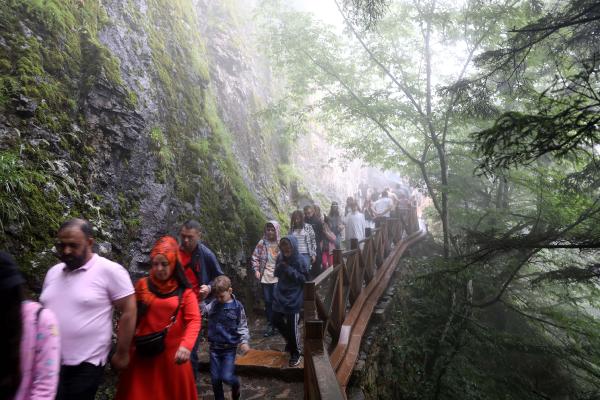TRABZON'un Maçka ilçesinde, 6 yıl sonra tüm alanları ziyarete açılan tarihi Sümela Manastırı'nda, Kurban Bayramı tatili dolayısıyla yoğunluk yaşandı. Yetersiz gişe ve minibüsler nedeniyle saatlerce beklemek zorunda kalan ziyaretçiler, uzun kuyruklar oluşturdu. Tur rehberi Hamdi Yılmaz, "Sümela Manastırı, tarihi günlerinden birini yaşıyor. 2,5 saatte manastıra çıkabildik" dedi.
