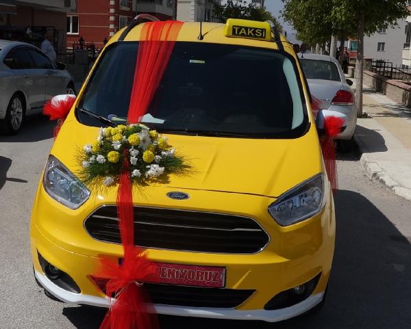 Kentte taksicilik yapan Yiğit Can Özdemir, eğitim fakültesi mezunu öğretmen adayı Buket Başoğlu (24) ile hayatını birleştirdi. Özdemir, kullandığı taksiyi gelin aracı olarak süsledi. Yiğit Can Özdemir, aracın arka camına, 'Bu sefer taksimetreyi mutluluğa açtım, sonsuzluğa gidiyorum' yazdı. Damat Özdemir'in babaevinden aldığı gelin Buket Başoğlu, taksinin ön koltuğuna oturdu. Gelin alma merasiminin ardından Özdemir'in mesai arkadaşları da düğünde taksilerden konvoy yaptı.