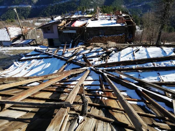 KASTAMONU'nun Taşköprü ilçesine bağlı İmamoğlu köyü İkizler mahallesinde etkili olan şiddetli fırtına nedeniyle 6 evin çatısı zarar gördü.