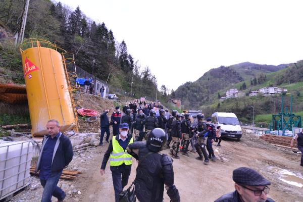 TRABZON'un Araklı ilçesinde yapımı süren hidroelektrik santral (HES) projesini protesto edenler ile jandarma arasında arbede yaşandı.
