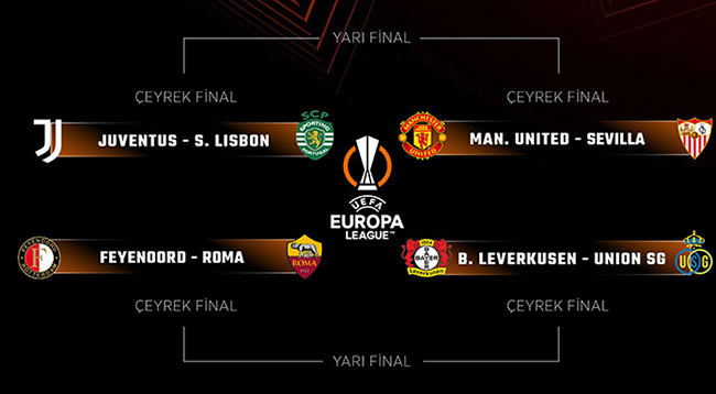 Avrupa futbolunun kulüp düzeyindeki iki numaralı organizasyonundaki çeyrek ve yarı final kuraları, İsviçre'nin Nyon kentindeki UEFA Genel Merkezi'nde düzenlenen törenle çekildi.