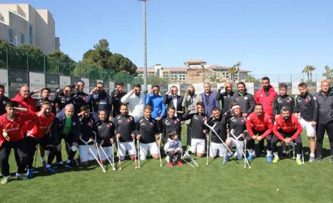 Milli maçlar nedeniyle Süper Lig'e verilen arada kamp çalışmaları için Antalya'da bulunan Çaykur Rizespor'da teknik direktör Bülent Uygun, aynı bölgede kamp yapan Ampute Milli Futbol Takımı'nı ziyaret etti.