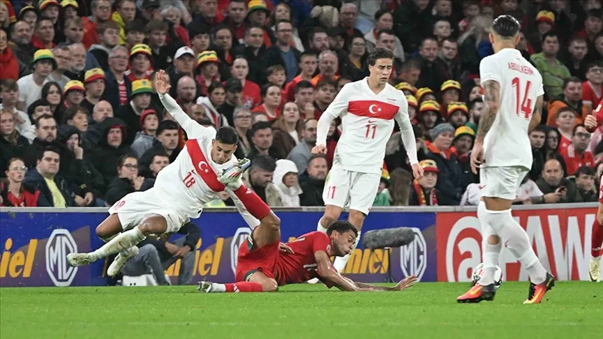 A Milli Takım, Galler deplasmanında ikinci yarıda Barış Alper Yılmaz'ın kırmızı kart görmesiyle 10 kişi kaldı.