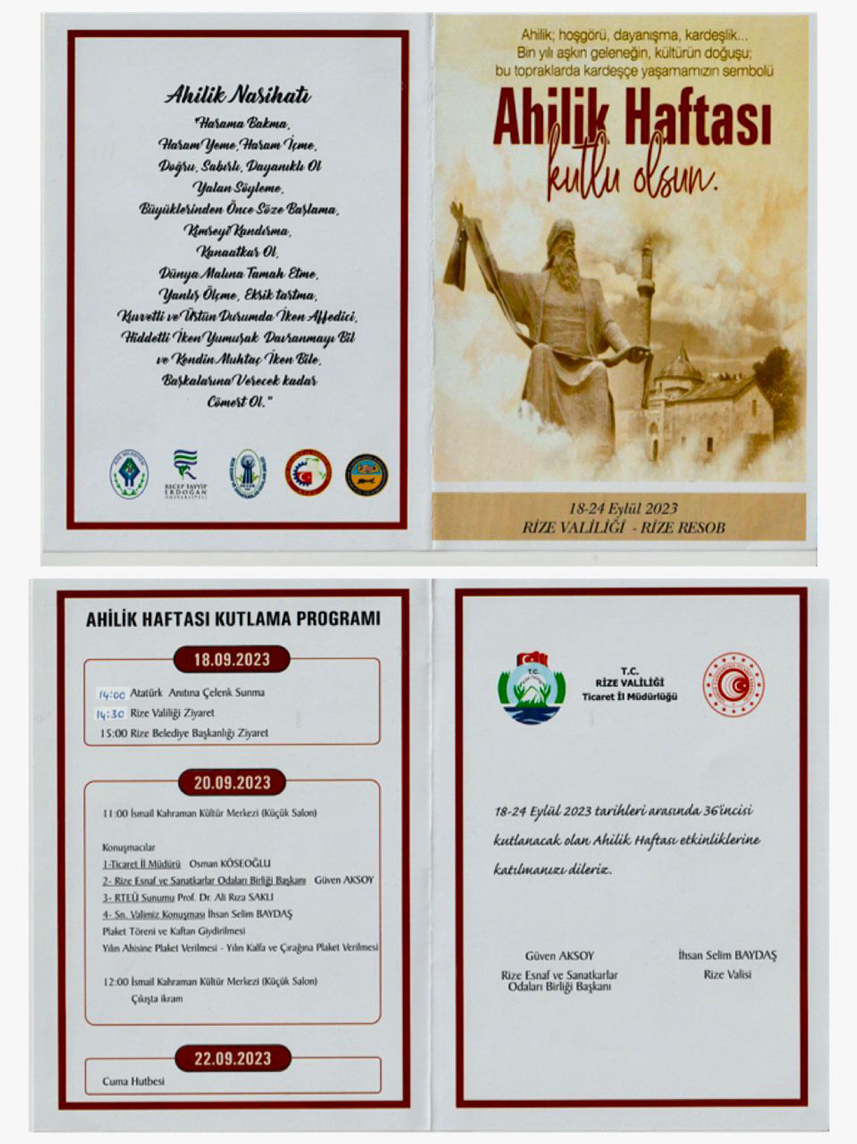 Rize Valiliği ile Rize Esnaf ve Sanatkarlar Odalar Birliği, Ahilik Haftasının bugün Atatürk anıtına çelenk töreni ile başlayacak.