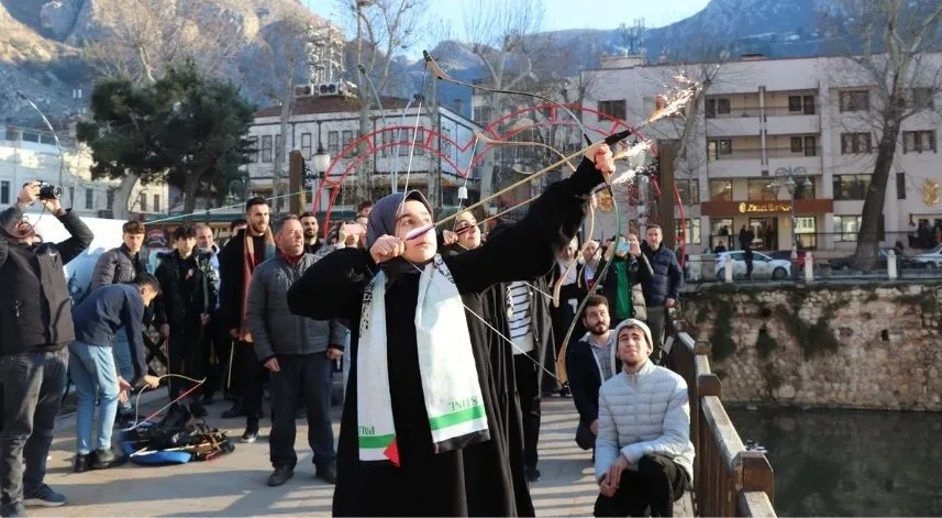 Amasya Üniversitesi Geleneksel Türk Okçuluk Kulübü tarafından, "Amasya'dan Gazze'ye çığlık okları" etkinliği gerçekleştirildi.