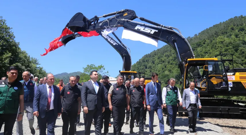 Artvin'in Arhavi ilçesinde Devlet Su İşleri (DSİ) bünyesinde 7 iş makinesi törenle hizmete alındı.