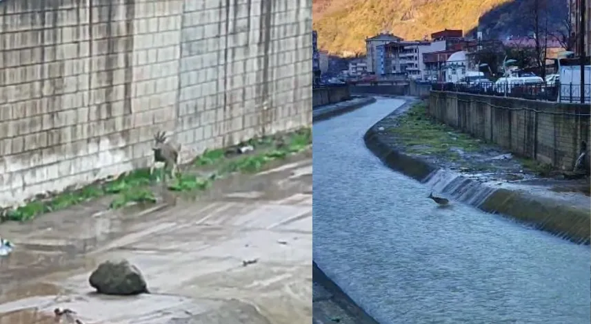 Artvin’in Borçka ilçesinde, derede mahsur kalan karaca, belediye görevlileri tarafından kurtarıldı.