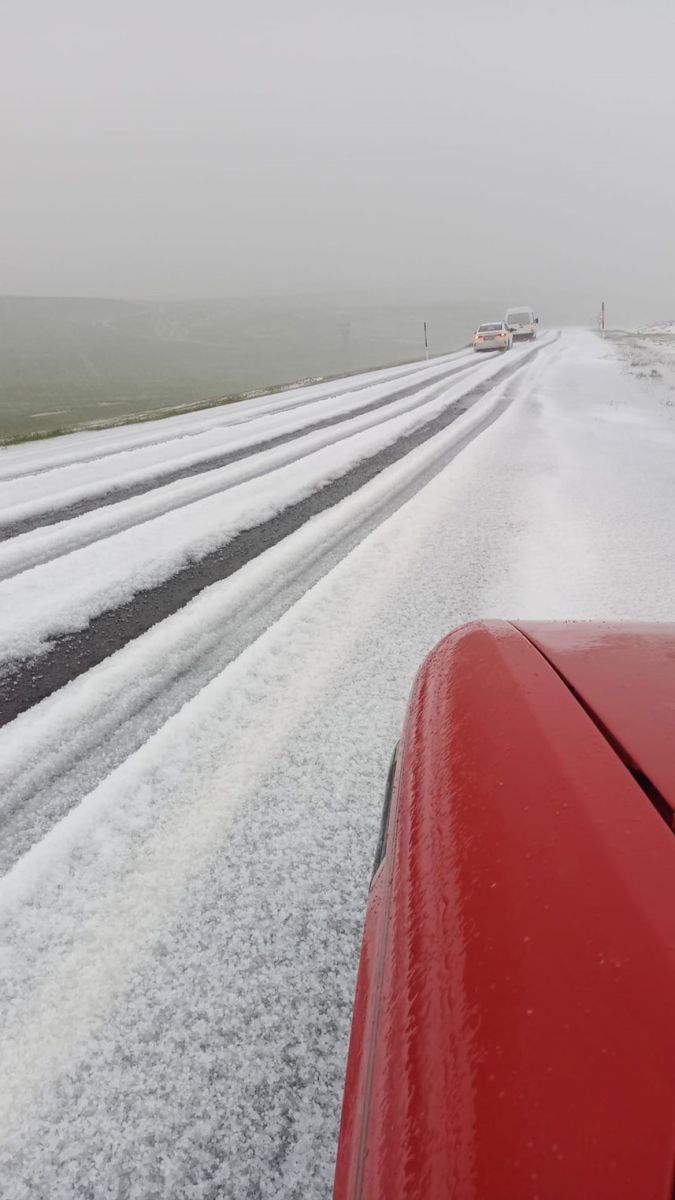 Artvin’in Şavşat ilçesi Sahra Geçidi'nde etkili olan dolu etrafı beyaza bürüdü.