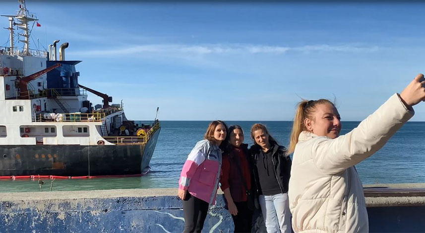 Artvin'in Hopa ilçesinde 27 Kasım Pazartesi günü, fırtına nedeniyle sürüklenerek karaya oturan, 13 kişilik mürettebatı sorunsuz tahliye edilen Palau bandıralı "FR Pearl" adlı kuru yük gemisi kıyıda bekletiliyor. Onarıldıktan sonra, yeniden demir alması beklenilen gemi ilçenin en işlek caddelerinden biri olan Sahil Caddesi kıyısında yer alınca vatandaşların yoğun ilgisiyle karşılaşıyor. Kıyıya bu kadar yakın mesafede karaya oturmuş halde duran gemiyi görenler cep telefonlarına sarılıyor. Kimi tarihi bu anı ölümsüzleştirmek istiyor, kimi ise gemiyi arka fon olarak kullanarak sosyal medya hesaplarından paylaşıyor.