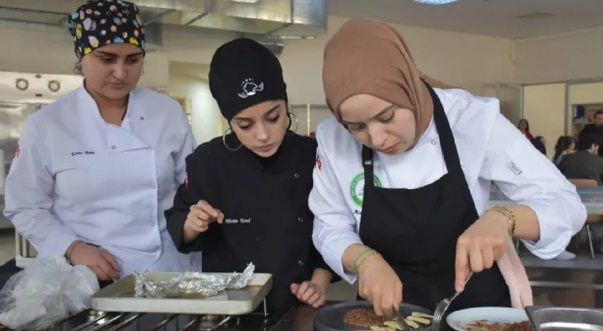 Semanur Savaş da Doğu Anadolu Bölgesi'ne özgü yöresel lezzetler yaptıklarını kaydederek, "Güneydoğu mutfağında iddialıyım ama Ege ve Karadeniz mutfağı noktasında kendimi geliştirmek istiyorum. Burada modern bir mutfağımız var. Hocalarımızın bizde emekleri çok büyük. Gastronomi çok sabır isteyen bir şey. Bölümümü çok seviyorum." ifadelerini kullandı.