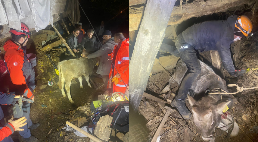 Artvin merkeze bağlı Ortaköy köyünde gece yarısı meydana gelen heyelanda bir büyükbaş hayvan telef olurken, 2 katlı ahşap ev kullanılamaz hale geldi.