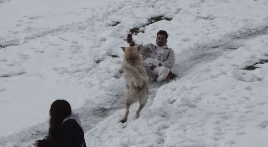 Rize'nin yüksek kesimlerinde etkili olan kar yağışı, Ayder Yaylası'nı da beyaza bürüdü. Eşsiz doğayı görmek isteyen yerli ve yabancı turistler de karın tadını çıkardı. Festival alanında kendilerine oluşturdukları kayak pistinde poşetler üzerinde kayan vatandaşlar doyasıya eğlendi. Bu sırada kayan vatandaşları görerek oynamak isteyen bir çoban köpeği onların peşinden koşmaya başladı. Çağatay Yıldız pisti tamamladığında yanına gelen köpek etrafında bir tur döndü ve kayan genci yakalayamadığı için bölgeden uzaklaştı. Bu sırada poşetle kayan Mert Gerdan'ı fark eden köpek, ona doğru koşmaya başladı. İlk etapta tedirgin olan Gerdan, sonrasında köpeğin kendisi ile oynadığını fark etti. O anlar kameranın yanı sıra o sırada kendisini telefonla kaydeden Gerdan'ın görüntülerine de yansıdı. Böylelikle ortaya renkli görüntüler çıktı.