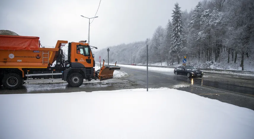 Karayolları ekiplerinin kar küreme ve tuzlama çalışması yürüttüğü bölgede, ulaşım normal seyrinde ilerliyor.