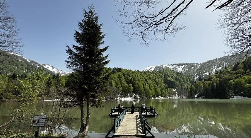 Eşiyle balayı tatili için çıktığı Karadeniz turu kapsamında Borçka Karagöl Tabiat Parkı'na gelen Yusuf Gültekin, "Karagöl mükemmel bir doğa harikası. Kışın kalıntıları var. Havası temiz ve serin. Burada baharı ve kışı bir arada yaşıyoruz. Doğa yeniden doğuyor hem de kıştan kalan karlar daha erimemiş. İkisi bir arada çok hoşumuza gitti." dedi.