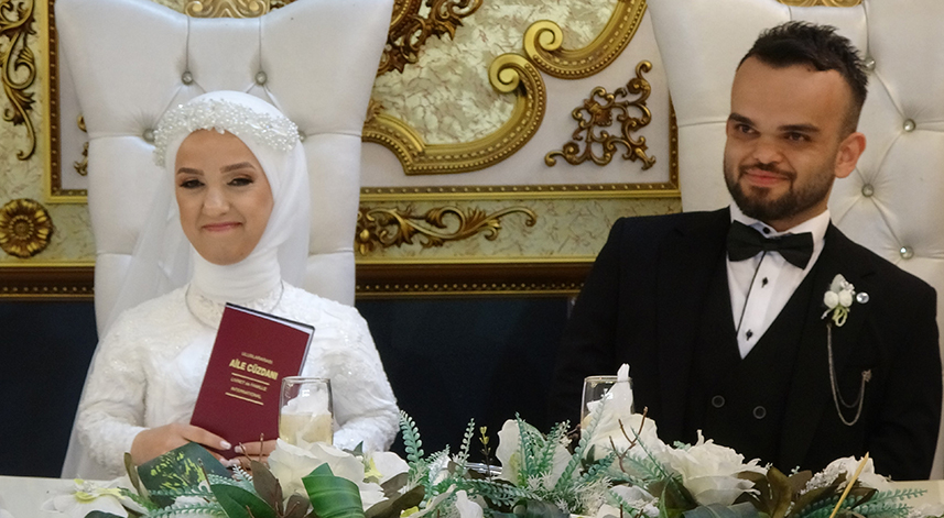 Trabzon Büyükşehir Belediyesi’nde çalışan Enes Hacısalihoğlu (27) ve Dilek Tomaç (28) bir süre önce tanıştı. Tanışmanın ardından konuşmaya başlayan çift evlenmeye karar verdi. Boyları küçük ama aşkları büyük olan çift Trabzon’un Akçaabat ilçesindeki düğün töreninde gelinlik ve damatlıklarını giyerek evlilik hayallerini gerçekleştirdi.