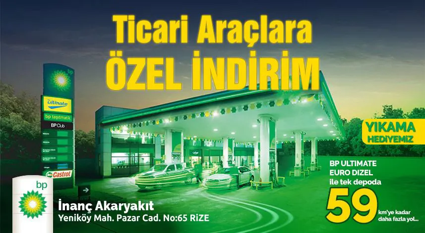 BP Rize Şubesi İnanç Akaryakıt ticari araçlar için özel kampanya başlattı. İndirimler için şubeden bilgi alabilrsiniz.