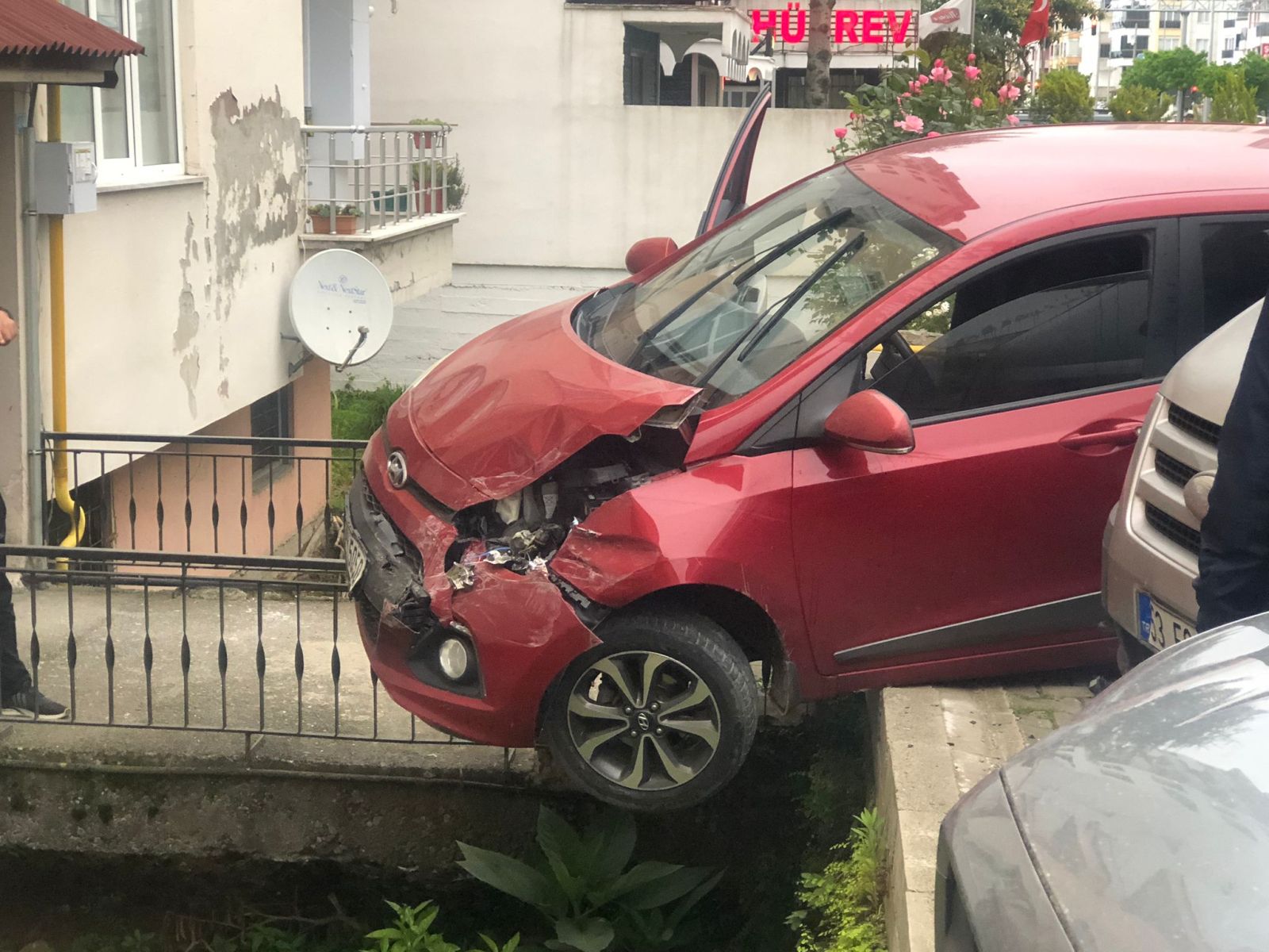 Edinilen bilgilere göre seyir halindeki 34 YH 5050 plakalı araç, başka bir aracın önüne geçmesiyle direksiyon hakimiyetini kaybederek 2 arabaya vurduktan sonra bir evin bahçe demirlerine çarparak durabildi.