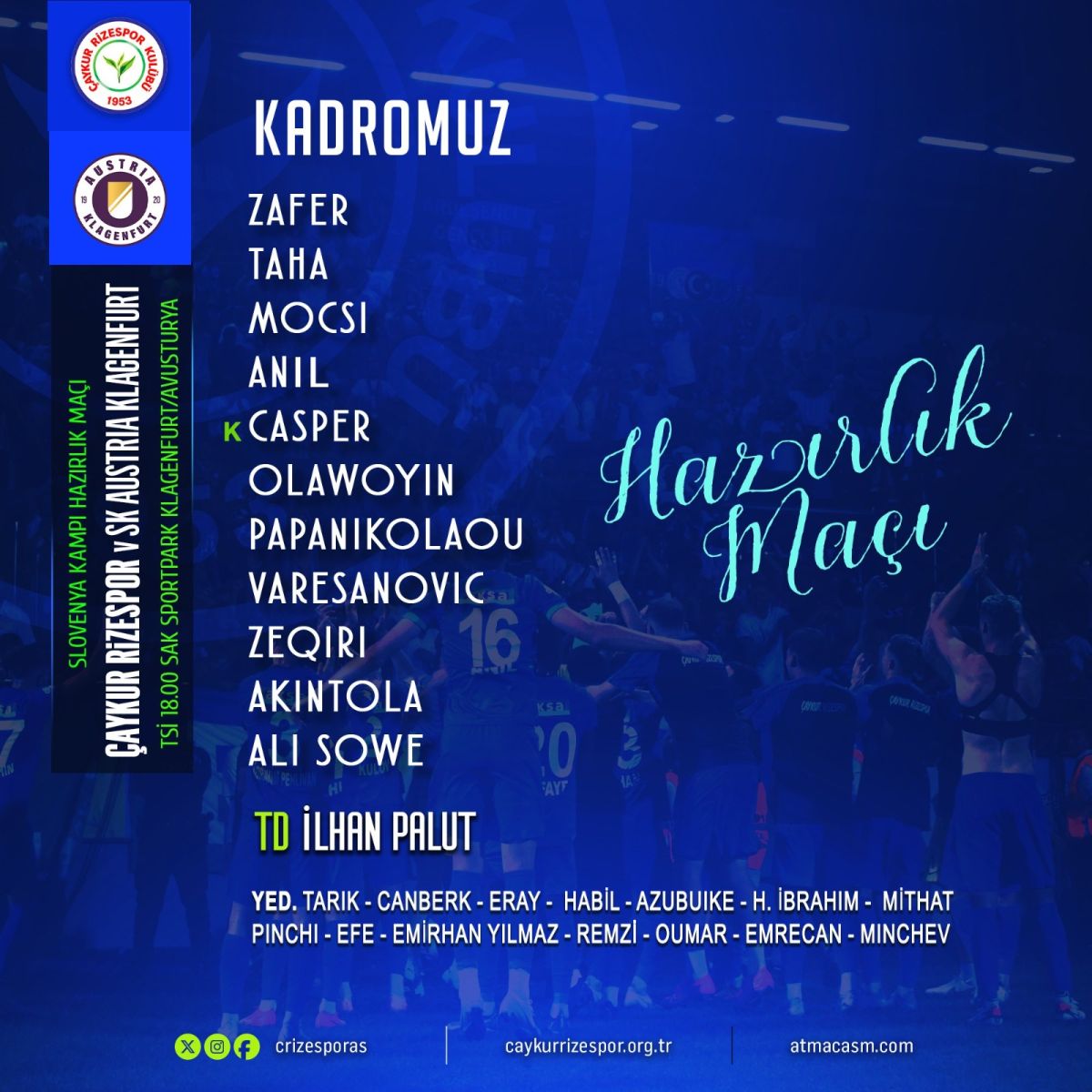 Çaykur Rizespor, Slovenya kampında 2. hazırlık maçında Avusturya 1. Lig ekiplerinden SK Austria Klagenfurt ile karşı karşıya geliyor.