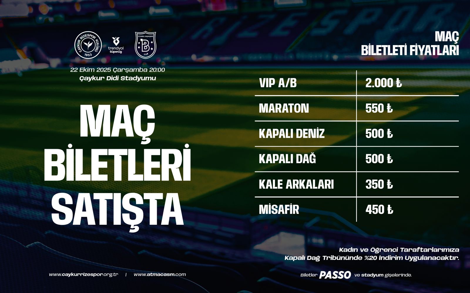 22 Ekim 2025 Çarşamba günü saat 20.00’de Çaykur Didi Stadı’nda oynanacak karşılaşmanın biletleri satışa sunuldu.