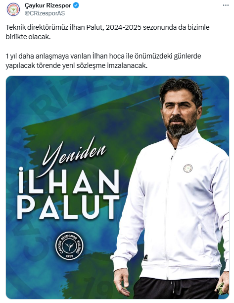 Yeşil-mavili ekipten yapılan açıklamada, "Teknik direktörümüz ilhan Palut, 2024-2025 sezonunda da bizimle birlikte olacak. 1 yıl daha anlaşmaya varılan İlhan hoca ile önümüzdeki günlerde yapılacak törende yeni sözleşme imzalanacak." denildi.