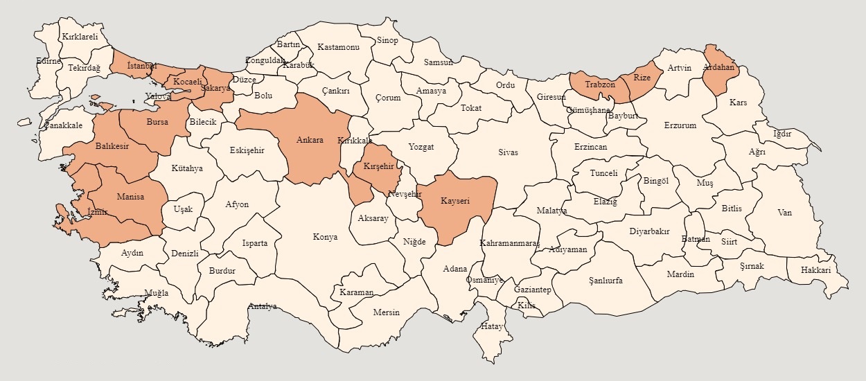 Çaykur Rizespor'un yerli futbolcularının memleketleri şu şekilde: