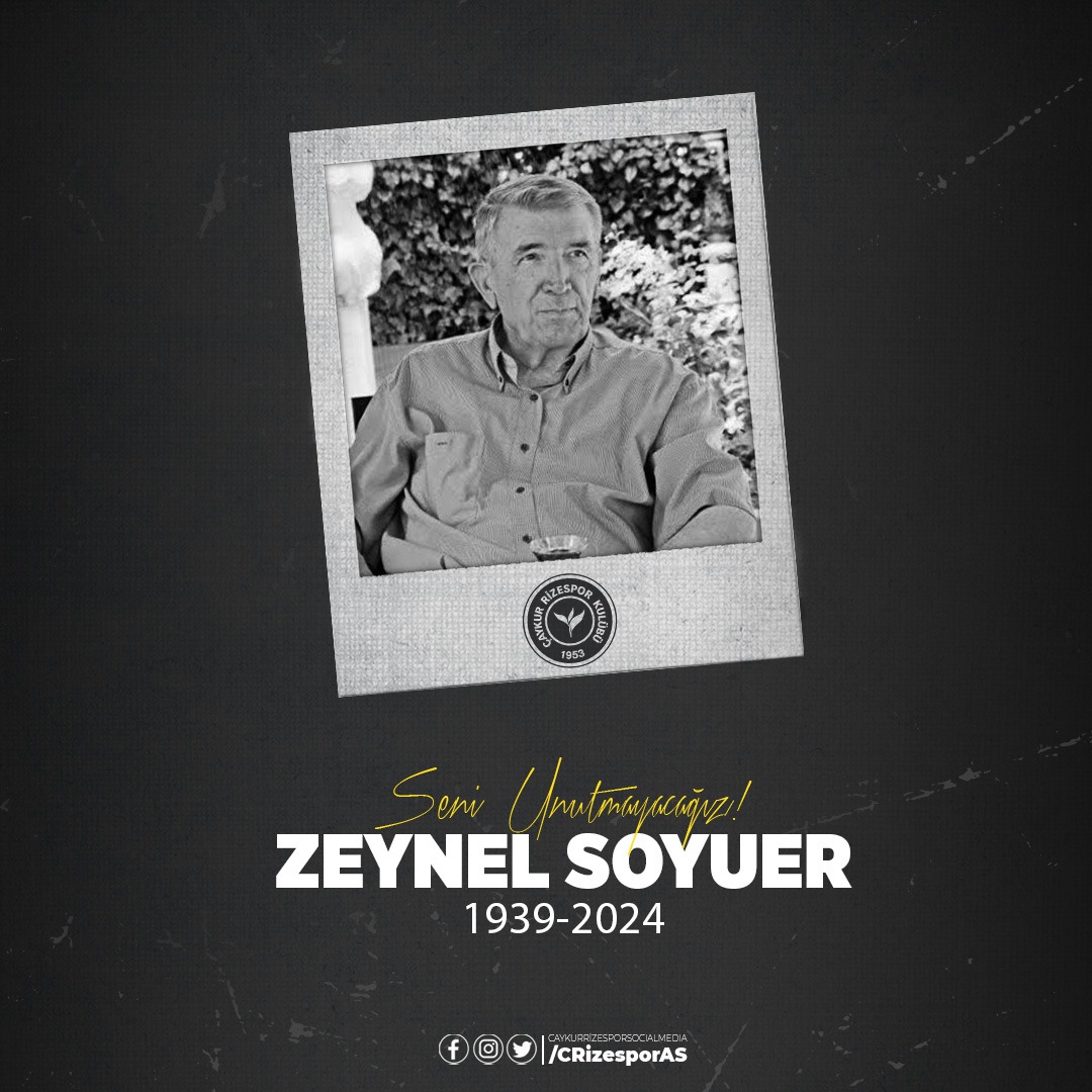 Çaykur Rizespor'un Süper Lig'de mücadele ettiği ilk sezonda takımın başında yer alan ve aynı sezonu 5. sırada bitirerek, yeşil-mavililerin lig tarihindeki en iyi derecesini elde eden teknik direktör Zeynel Soyuer, 85 yaşında hayatını kaybetti.