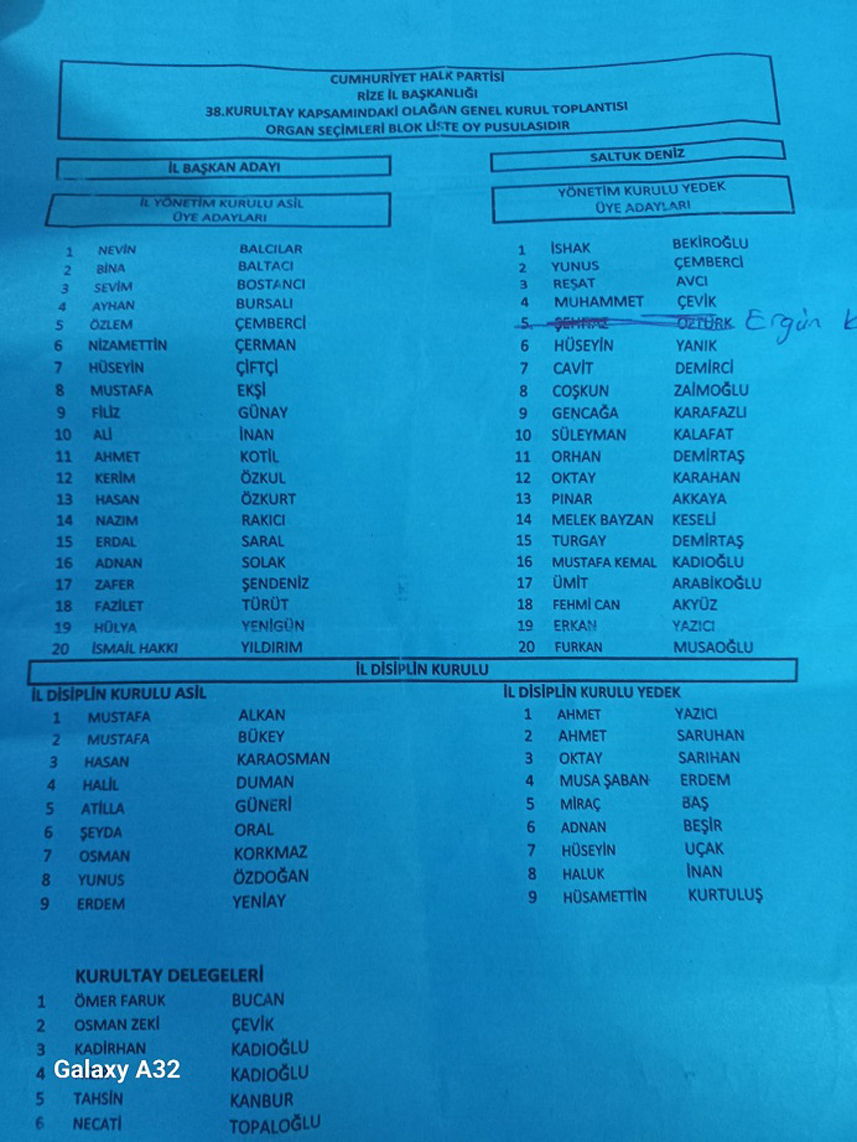 Saltuk Deniz'in il başkanlığında CHP Rize'de yeni yönetim şu isimlerden oluştur: