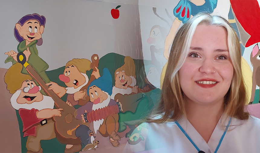 Serviste boya tadilatının başladığı sırada hemşirelerin kendi arasında ki servisi eğlenceli hale getirme hayali sohbetlerini duyan stajyer hemşire Yaren İrem Dinç, kendisinin resim çizme yeteneği olduğunu söyledi. Dinç “Servis yeni boyanıyordu o sıralar. Hani keşke biraz daha süslü olsa gibisinden konuşmalar oldu hemşirelerle. Ondan sonra ben de böyle bir şey yapabileceğimi söyledim. İşte küçüklüğümden beri uğraştığımı söyledim. Sonrasında böyle bir şeye kalkıştık. İlk önce hemşirelerle beraber yeni yeni boyalar alarak başladı. Sonra işte doktorlar da yardım ettiler. Öyle böyle gelişti yavaş yavaş. Şimdi fotoğraf çekiyorlar, çocukları burada daha çok eğlendiriyorlar, oynatıyorlar. Hani çocukların da odağı genelde duvarlar oluyor, karakterler oluyor. Bu yüzden de hani ağlamaları en azından ertelenmiş oluyor. Hoşuma gidiyor yaptığım şeyin böyle güzel bir şekilde karşılanması, hani beğenilmesi” diye konuştu.