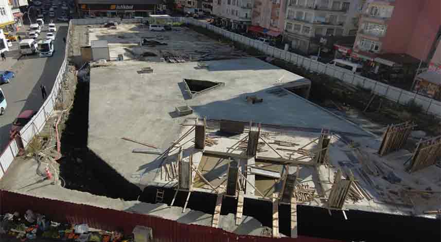 Rize'de Dalyan Kapalı Otopark ve Sosyal Alan projesinde üst yapı çalışmaları devam ediyor.