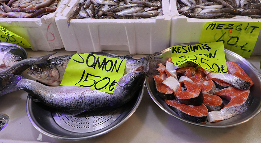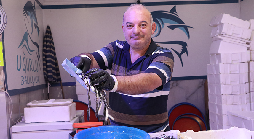 Denizlerin soğumaya başlamasıyla balıkların tezgahlarda bol olduğunu belirten Kadir Vural, “Şu anda av sezonu iyi gidiyor. Havalar biraz daha soğudu. Çeşitler bollaşmaya başladı. Çinekop gözükmeye başladı. Yerli balık gözükmeye başladı. Havalar soğumaya başladığından ötürü ürünlerimiz çoğalmaya başladı. Dağdaki bütün toprak denize indi. Deniz bulanık olduğu zaman avlanmak biraz daha sıkıntılı oluyor. Yerli hamsimiz 35 TL, Marmara hamsisi 75 TL. Yerli hamsinin fiyatının düşmesinin sebebi, bol olması. Havaların daha çok soğuması. Havaların sıcaklığı düştü, Bundan dolayı bereketli oluyor. Vatandaşlar memnun. 1 kilosu 35 lira. Normalde etin, tavuğun fiyatı yüksek. Bir kilo hamsiden 2-3 kişi doyabilir. Bereketli bir sezon bekliyoruz. 15-20 gün daha var. Daha bol ve bereketli bir av sezonu bekliyoruz. Bu fiyattan aşağıya düşmez. Çünkü bu işinde maliyeti var. Şu anda 35 lira hamsi, İstavrit 35, Barbun 60 TL. Çupra, Levrek ve Somon var. Havalar biraz daha soğuduğu zaman daha da çoğalacak ve ucuzlayacak” diye konuştu.