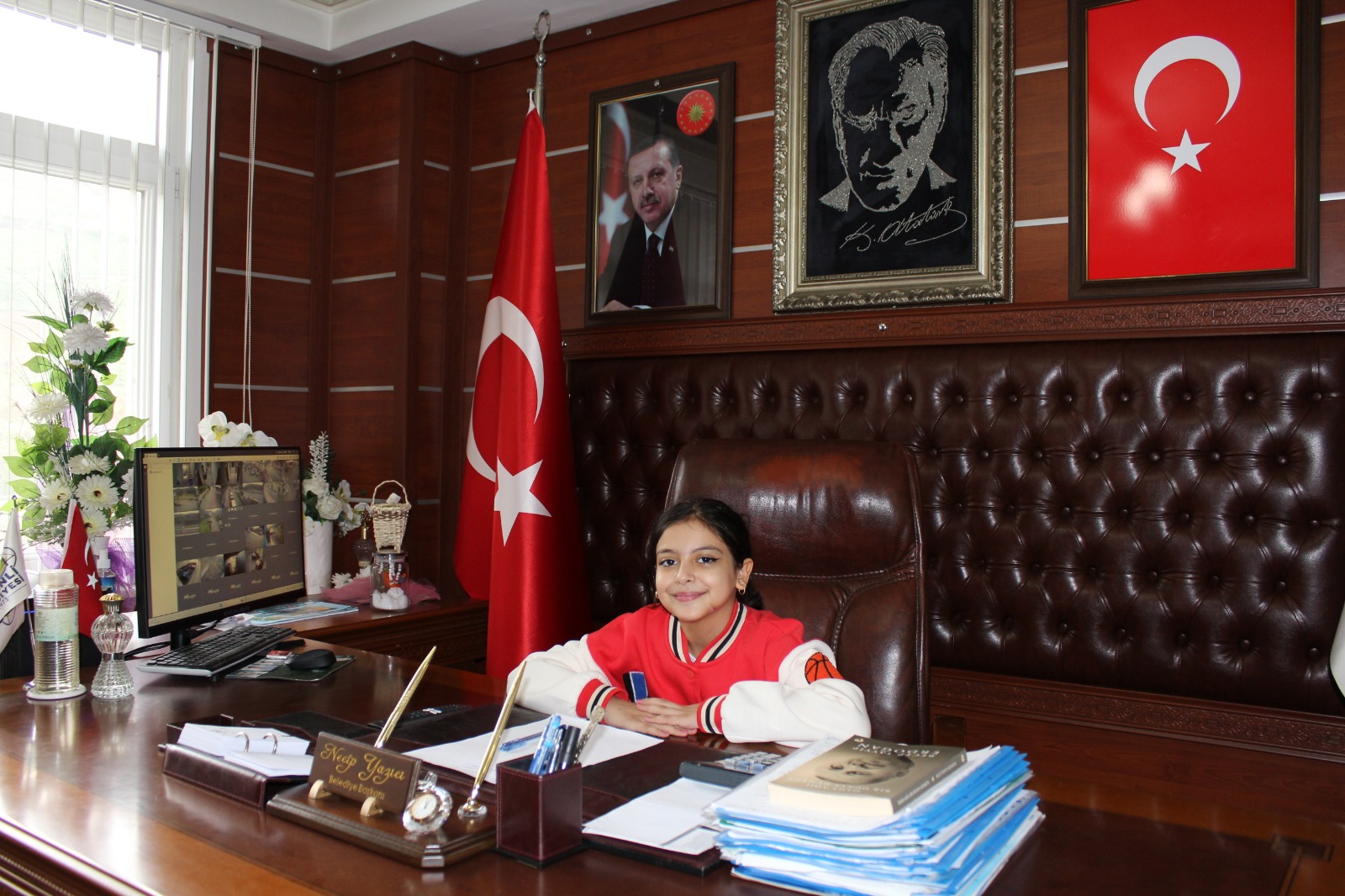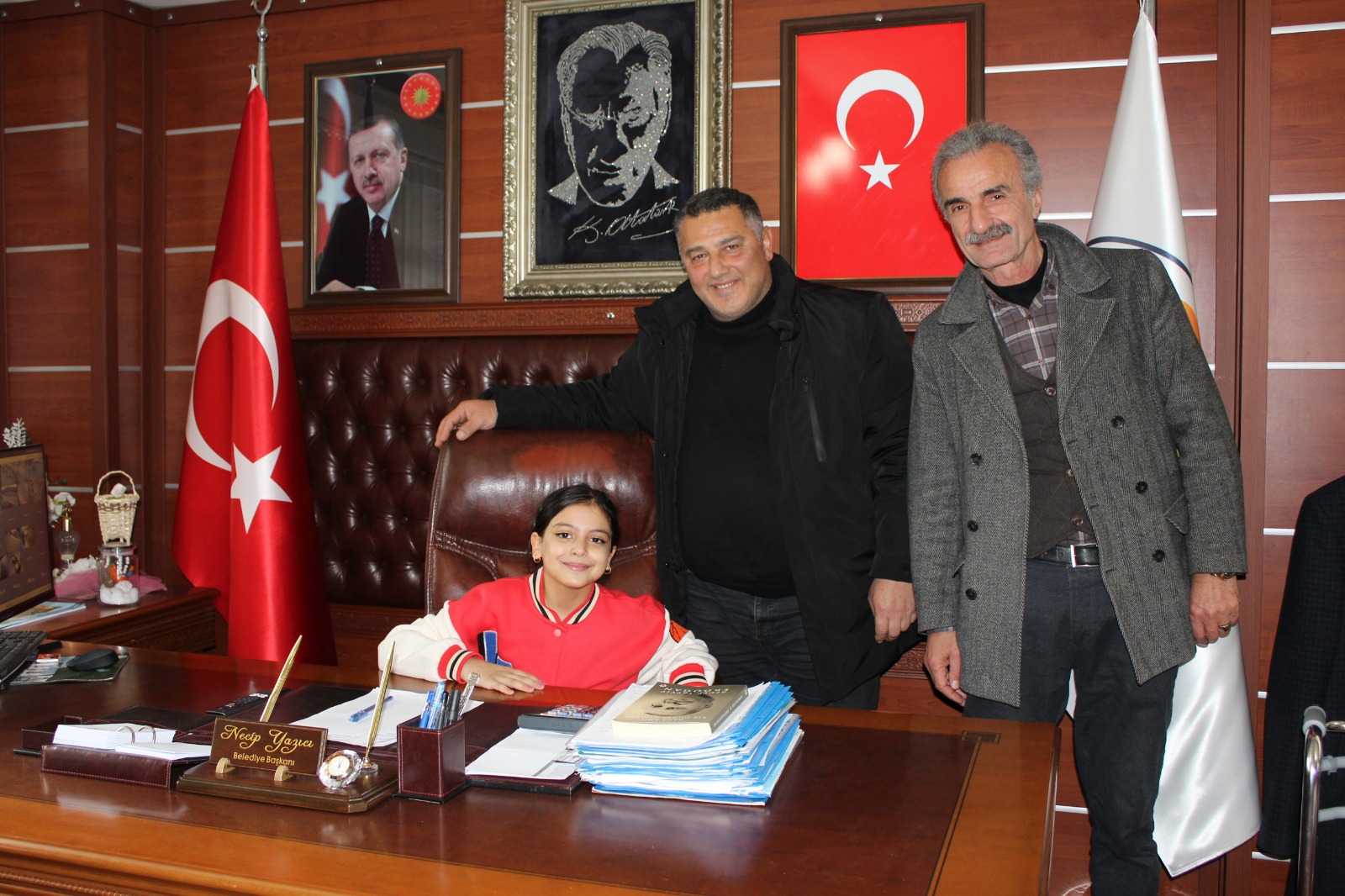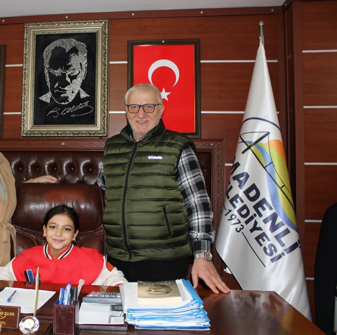 Madenli Belediye Başkanı Necip Yazıcı, Melike'yi makamında ağırlayarak başkanlık koltuğuna oturttu.