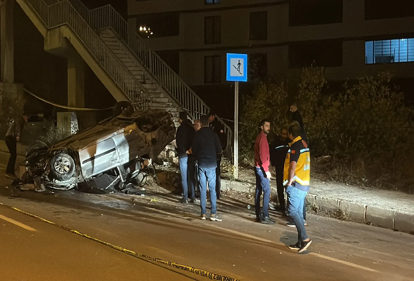 Bayburt'ta kaldırıma çarptıktan sonra devrilen otomobilin sürücüsü hayatını kaybetti.