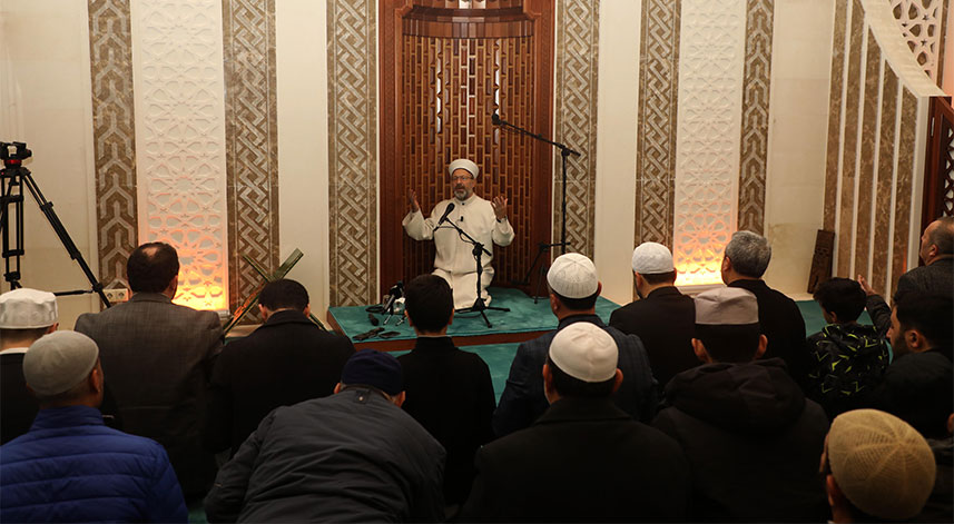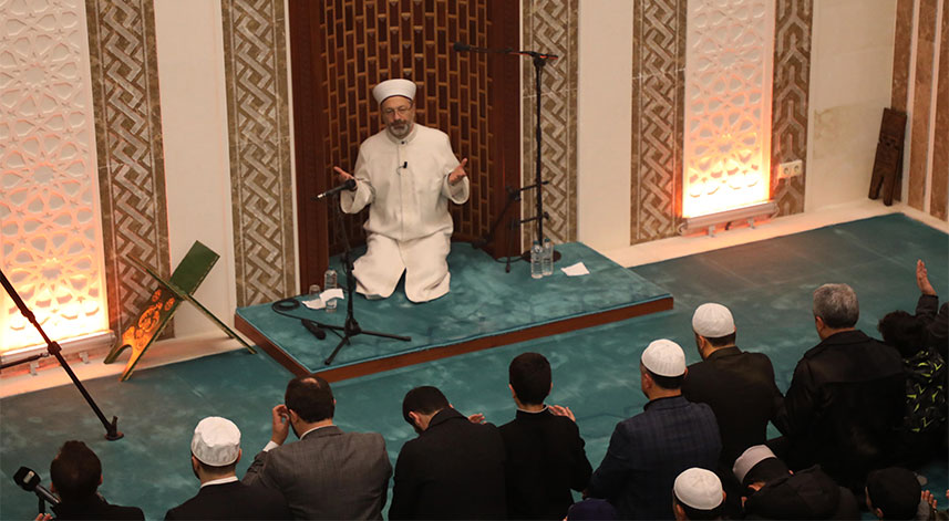 Erbaş, Kur'an ve İslam ilkeleri etrafında toplanma çağrısında bulunarak, "Bizim bir olduğumuz asırlarda her zaman huzur ve barış içerisinde yaşanmıştır. Bizler tefrikaya düştüğümüz zaman dünya kaosa, savaşlara sürüklenmiştir. Bu yüzden aziz kardeşlerim, gençlerimize, çocuklarımıza birliğimizin, beraberliğimizin ne kadar önemli olduğunu anlatmamız lazım. Okullarımızda her yerde birliğimizin daim olması için elimizden gelen gayreti göstermemiz lazım. Biz dağıldığımızda zalimler hemen üzerimize saldırıyorlar. Osmanlı Devleti'mizin zayıfladığı sıralarda bütün zalimler nasıl üzerimize saldırdıysa, bugün de azıcık sendelediğimiz de bütün zalimlerin nasıl üzerimize saldırdığını hep birlikte görüyoruz." dedi.