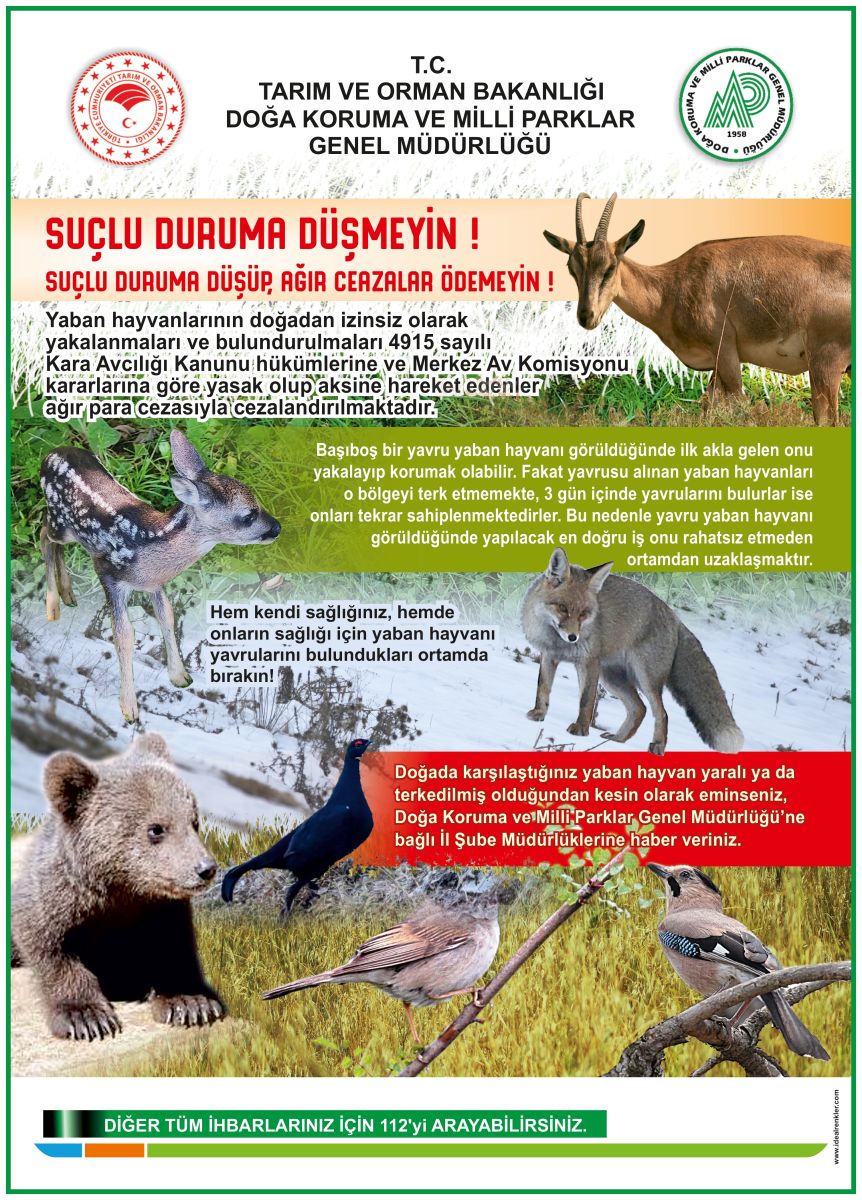Yapılan açıklamada hem insan sağlığı, hem de yaban hayvanlarının sağlığı için yavruların bulundukları ortamda bırakılması gerektiğini belirtilerek, "Doğada karşılaştığınız yaban hayvan yaralı ya da terkedilmiş olduğundan kesin olarak eminseniz, Doğa Koruma ve Milli Parklar Genel Müdürlüğü’ne bağlı İl Şube Müdürlüklerine haber veriniz" uyarısı yapıldı.