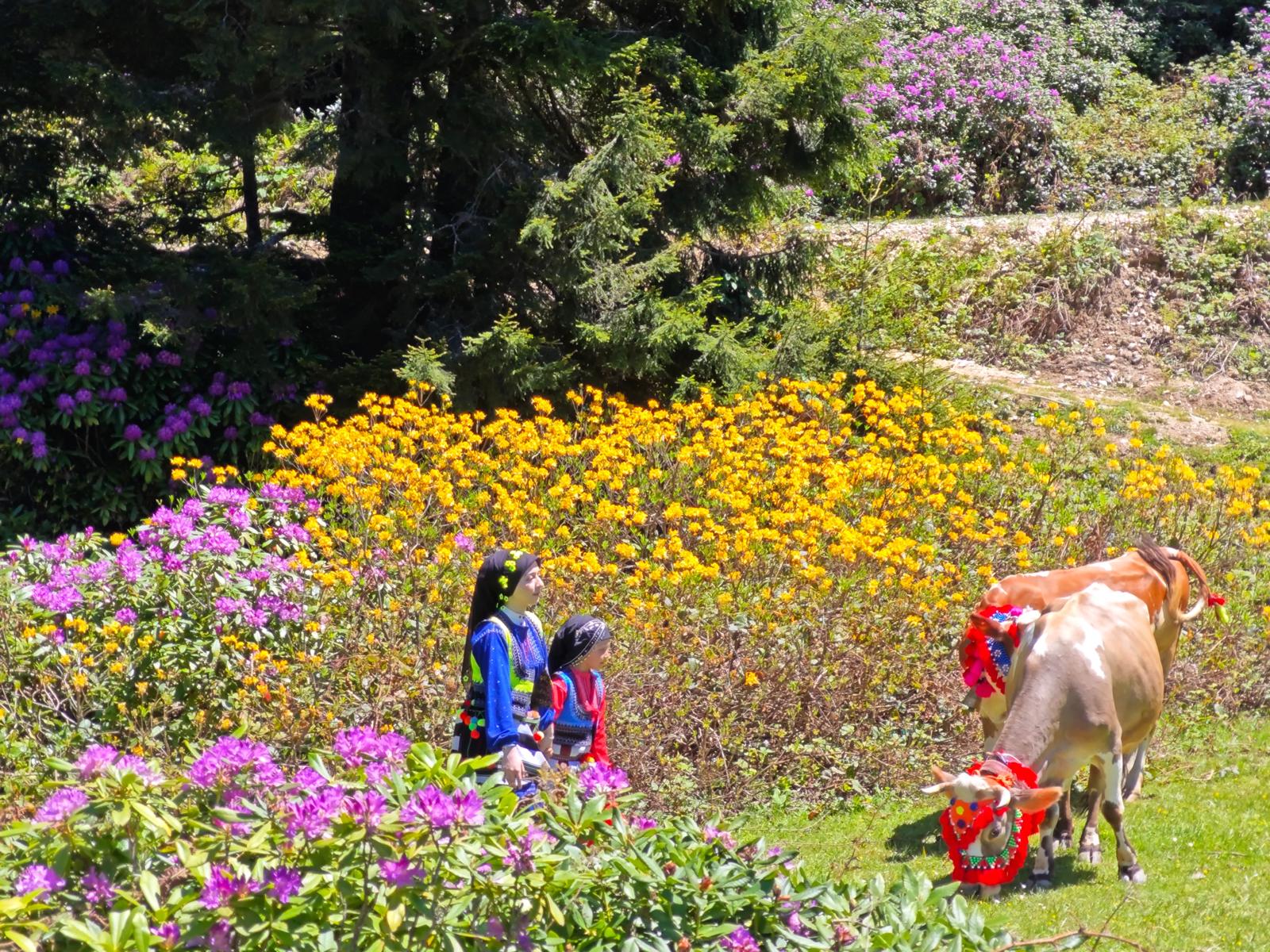 Sabahın ilk ışıklarıyla yola koyulan yöre sakinleri, hayvanlarıyla yeşilin her tonunu barındıran orman, çayır ve yollardan geçerek ilçeye bağlı yaylalara ulaşıyor.