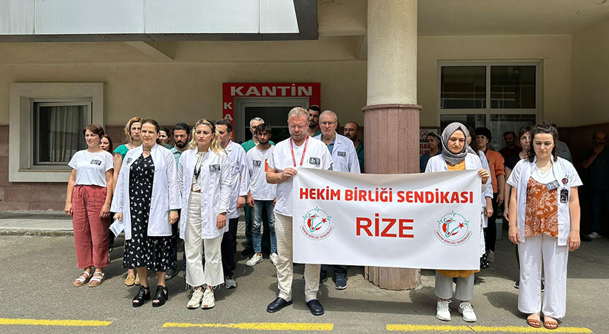 Rize Devlet Hastanesi önünde toplanan sağlık çalışanları, Dr. Karakaya’yı andı.