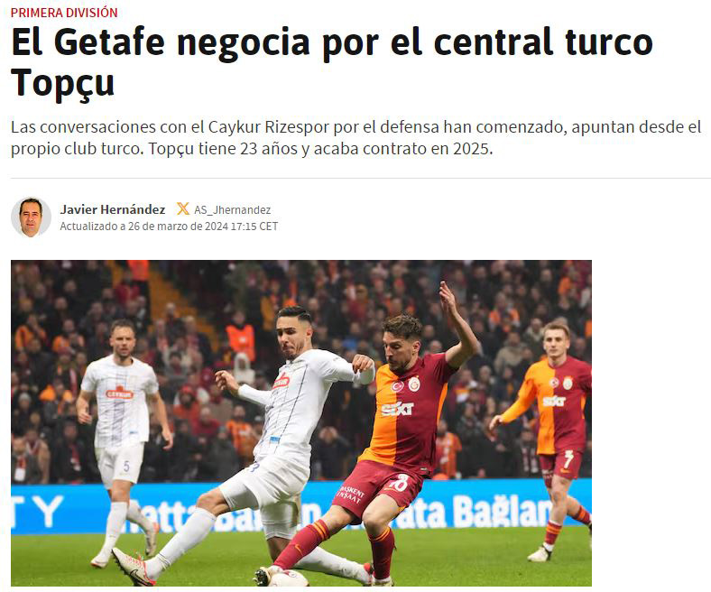 İspanyol basınından As'ta yer alan habere göre, Getafe'nin genç stoperi kadrosuna katmak adına resmi teklifte bulunmaya hazırlandığı belirtildi.