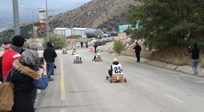 Sürücülerin zaman zaman tehlikeli anlar yaşadığı yarışlarda bazı tahta arabaların tekerleği kırıldı, bazıları ise devrildi.