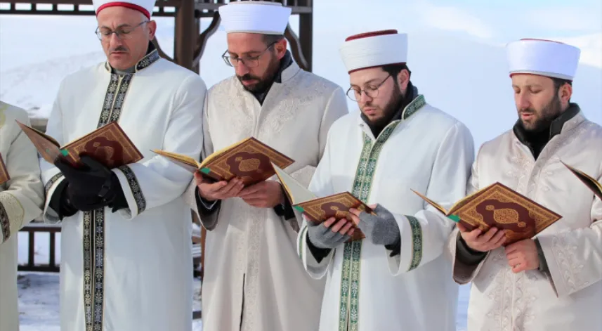Erzurum'da şehrin ve ülkenin afet ile belalardan korunması için yaklaşık 500 yıldır devam eden "1001 Hatim" geleneği için soğuk havada düzenlenen programla hatimler okunmaya başlandı.