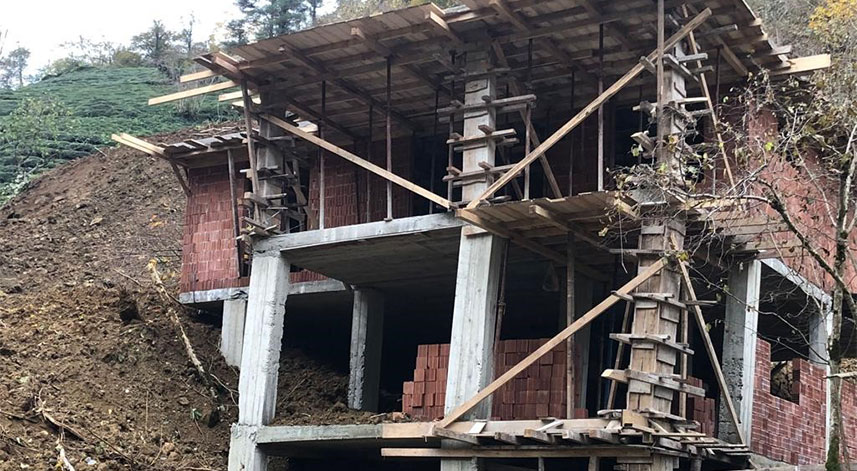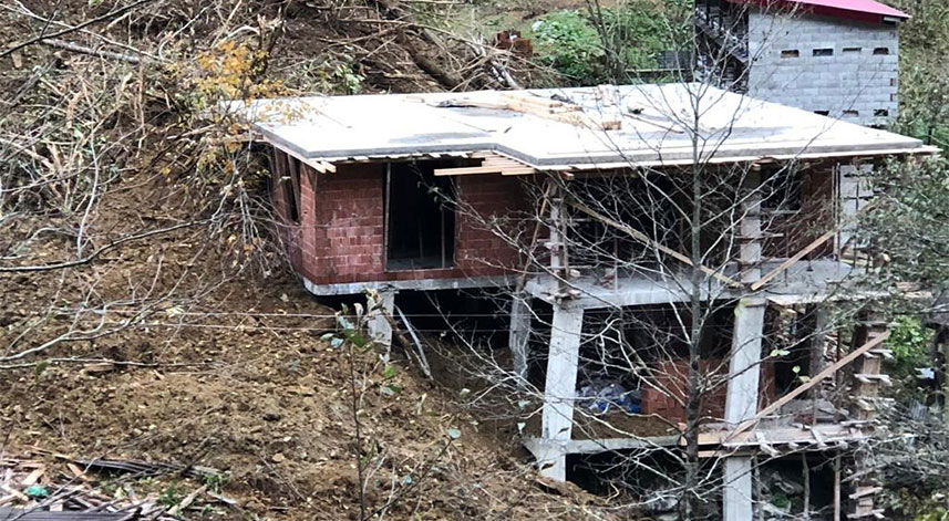 Artvin’in Arhavi ilçesinde toprak kayması nedeniyle bir otomobil toprak altında kalırken inşaat halindeki bir ev hasar aldı.